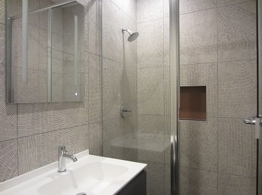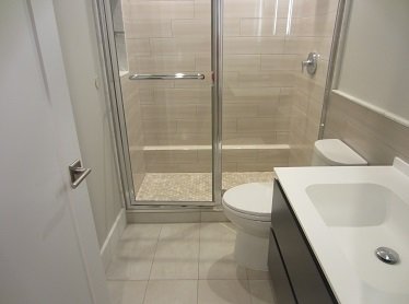 • Both beautifully tiled bathrooms include shower stalls and vanities with good storage.