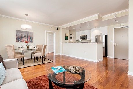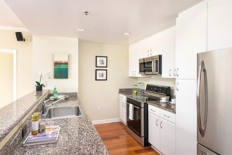 - The unit consists of a living room, bedroom, kitchen, and full bath.